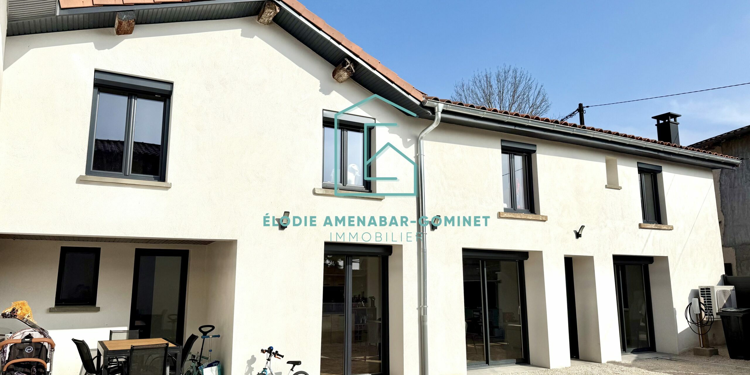 La maison est équipée d’une climatisation réversible, chauffage électrique et d’un poêle à bois. La toiture, la façade et les menuiseries sont neuves. L’extérieur entièrement aménagé et bien entretenu dispose de deux places de stationnement, une terrasse carrelée, couverte et une petite partie jardin.